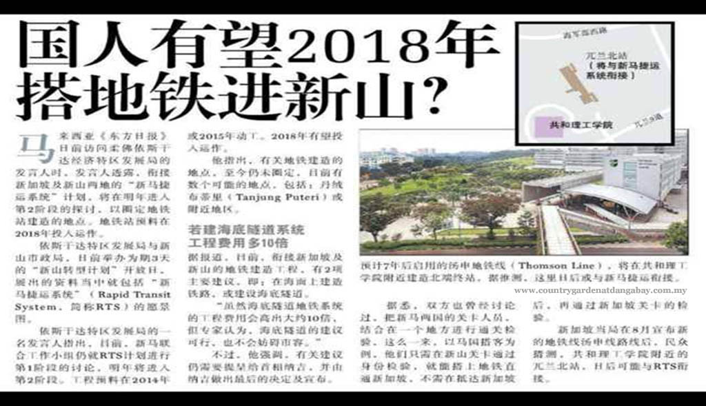 6. Singapore ZaoBao said that high possility Singapore Thomson MRT Line will be extended into Johor Bahru on 2018